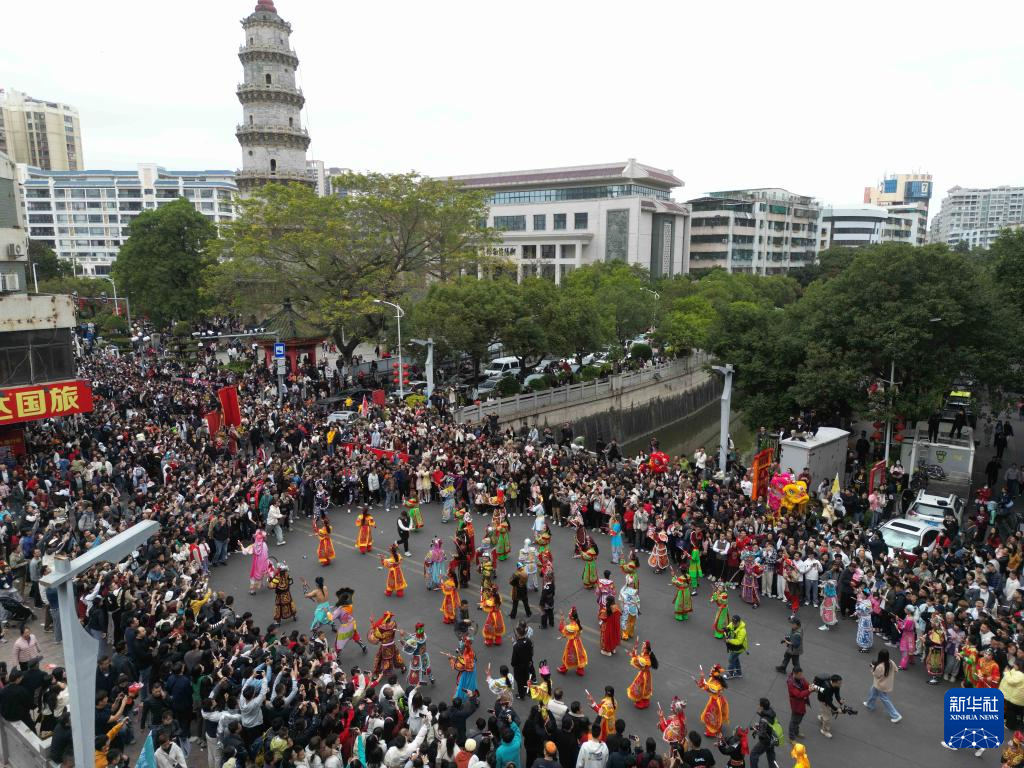 2月2日,广东汕头潮阳区“中华英歌 舞动潮阳——2025年春节潮阳英歌嘉年华活动”举行英歌舞巡游(无人机照片)。
