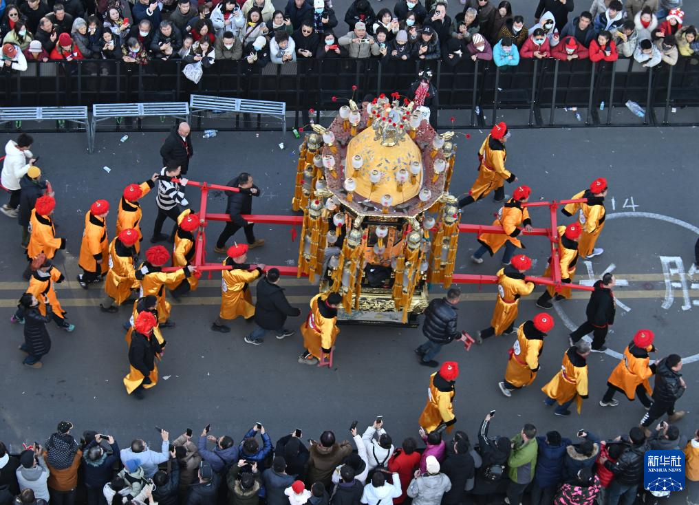 当日是农历正月十六,一年一度的妈祖祭典(葛沽宝辇会)在天津市津南区葛沽镇精彩上演。妈祖祭典(葛沽宝辇会)2014年被列入国家级非物质文化遗产代表性项目名录,可分为设摆、接驾、送驾三个主要环节,包括座乐会和耍乐会两个部分,是当地群众庆贺新年、祈福吉祥的重要活动。