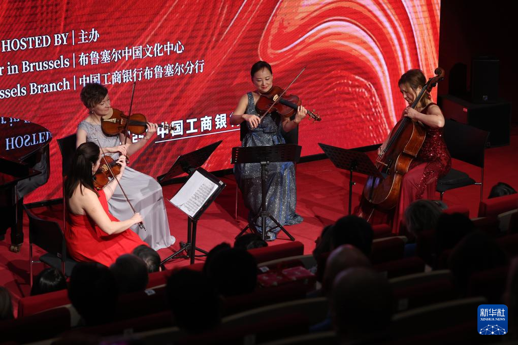 2月15日,“艺韵”女子弦乐四重奏组合在比利时布鲁塞尔中国文化中心新春音乐会上演奏。
