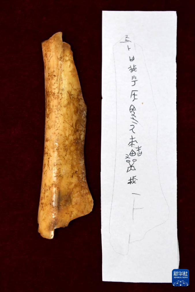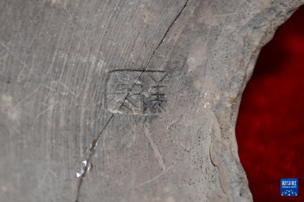 这是2025年2月25日拍摄的周原遗址出土刻辞卜骨。新华社记者 李一博 摄