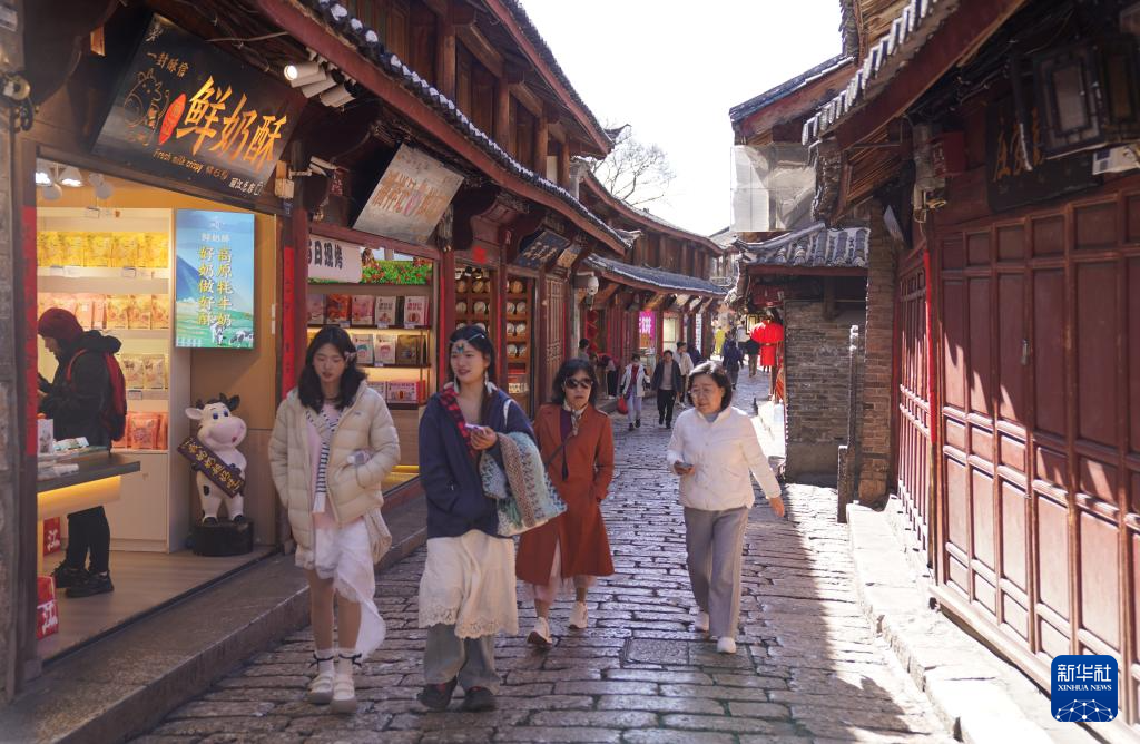 3月25日,游客在云南省丽江市丽江古城游览。