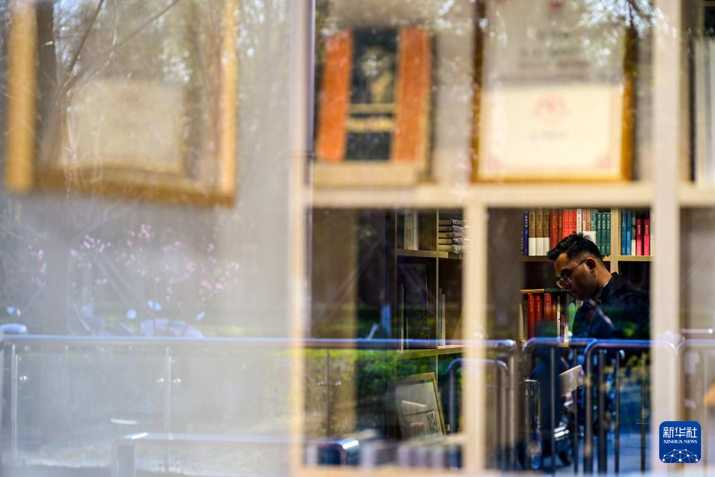 读者在位于北京市西城区佟麟阁路的模范书局·诗空间阅读学习(3月28日摄)。