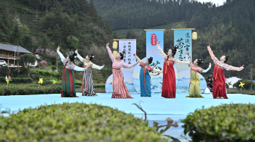 3月31日,演员在乙巳年黄帝故里拜祖大典迎宾仪式上表演。