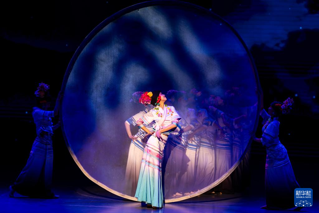 4月1日,昆明城市学院艺术学院的演出人员在表演舞蹈《月亮之下云彩之上》。