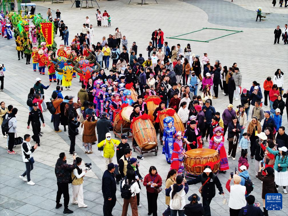 在百色近日启动的“和美红城 千姿百色”2025年三月三各族群众大联欢活动中,凌云瑶族长号、田东古壮拳、乐业壮族龙灯舞等各民族非遗表演纷纷亮相,各族群众和游客同唱一首歌、同跳一曲舞、同过一个节。