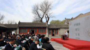 4月2日,湖北省武汉市洪山区未来实验小学美林校区学生在读书日活动中吟诵古诗。