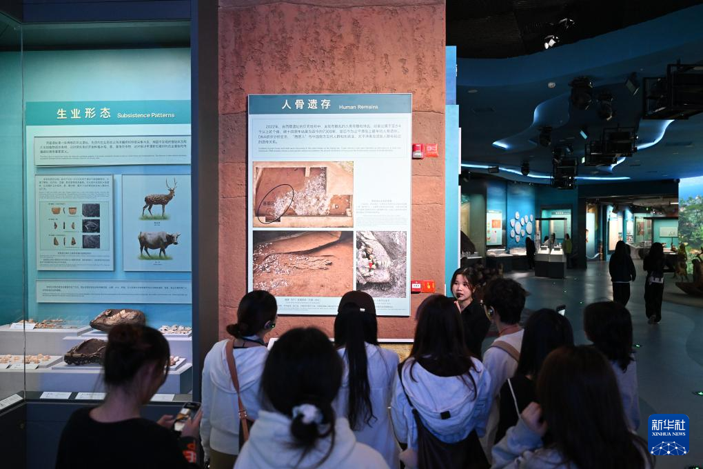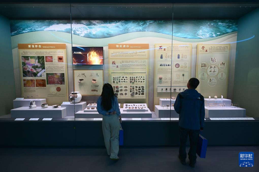 4月9日,观众在中国考古博物馆壳丘头分馆内参观。