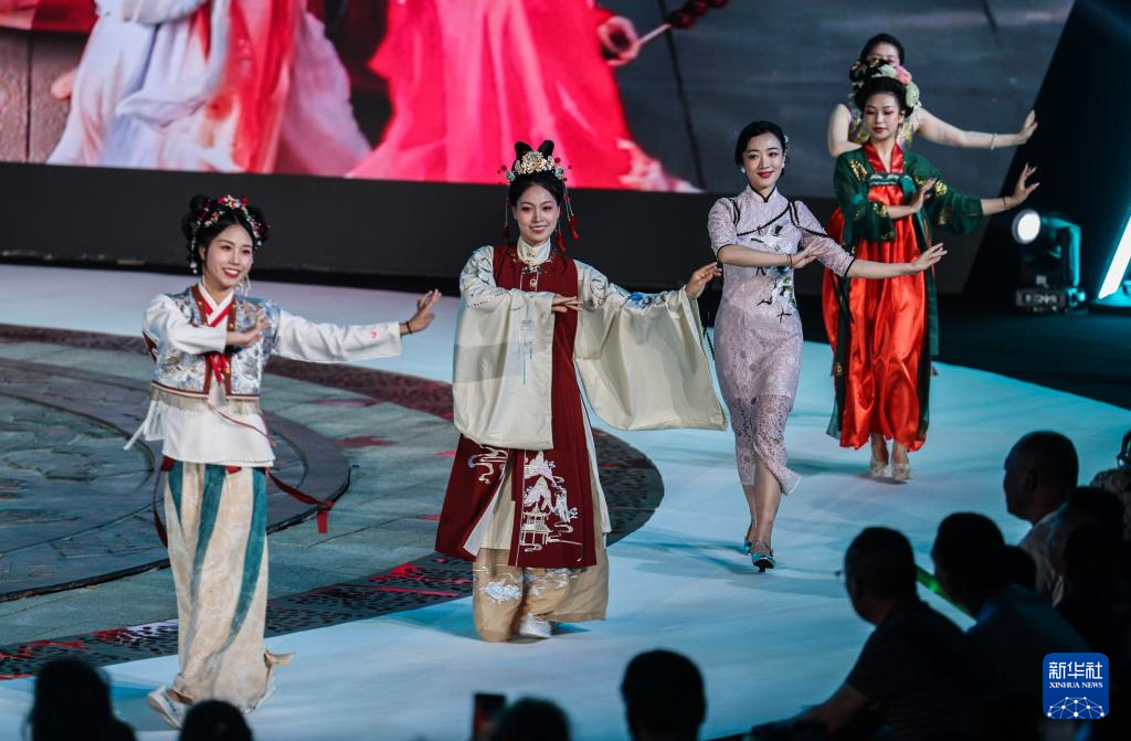 5月7日,浙江省建德市寿昌镇举行以“千年寿昌 遇见未来”为主题的音乐时装秀。本次时装秀活动融合音乐表演、服装走秀、传统舞龙表演等多元形式,是当地发展特色夜经济的主题活动之一。