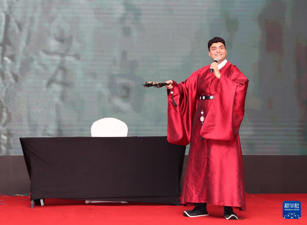 5月18日,在巴西里约热内卢,来自巴西南里奥格兰德州联邦大学孔子学院的罗德里戈·古特雷斯夺得大学生组比赛冠军。