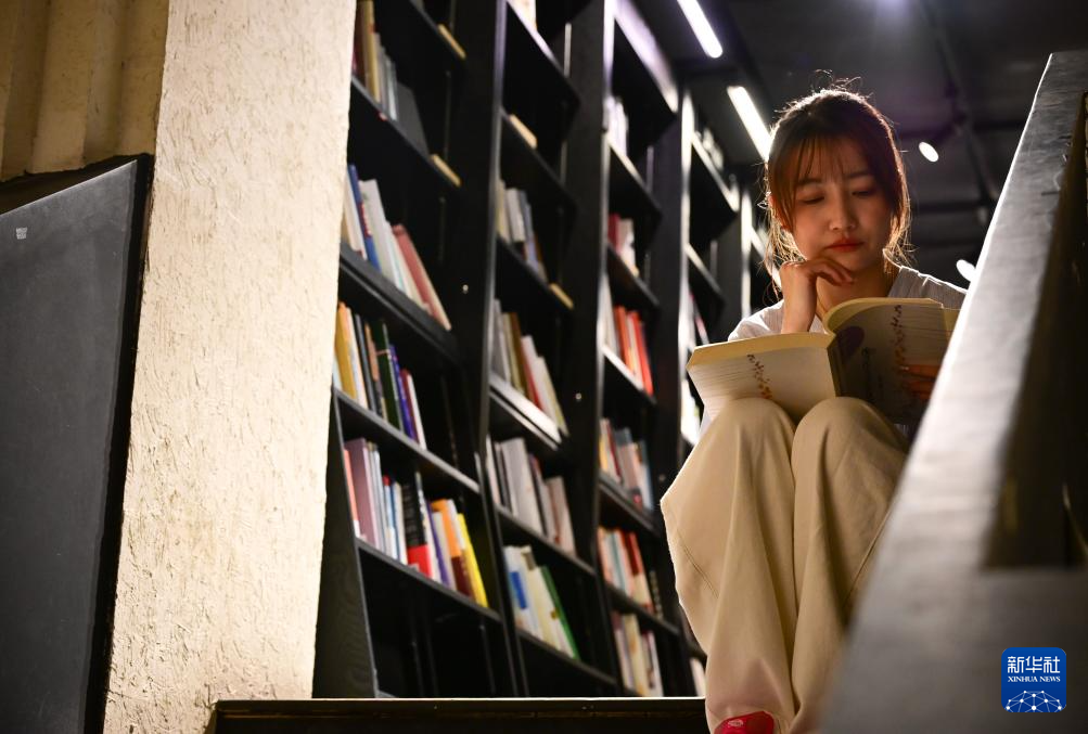 5月25日,一名市民在青海省西宁市几何书店内看书。