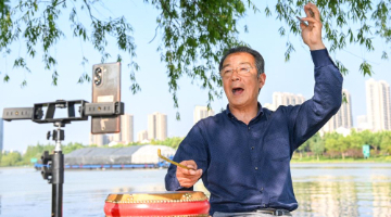 5月24日,在新疆阿勒泰市汗德尕特蒙古族乡,演员在活动现场唱歌。