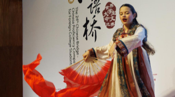 5月24日,在新疆阿勒泰市汗德尕特蒙古族乡,演员表演节目。
