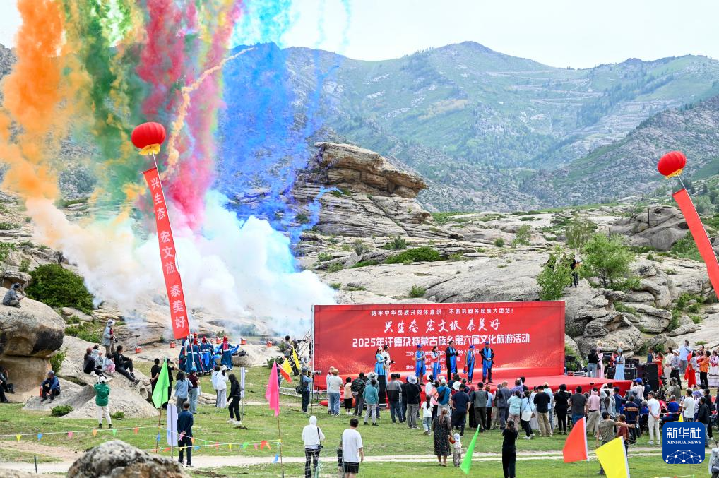 这是5月24日拍摄的新疆阿勒泰市汗德尕特蒙古族乡第六届文化旅游活动现场。