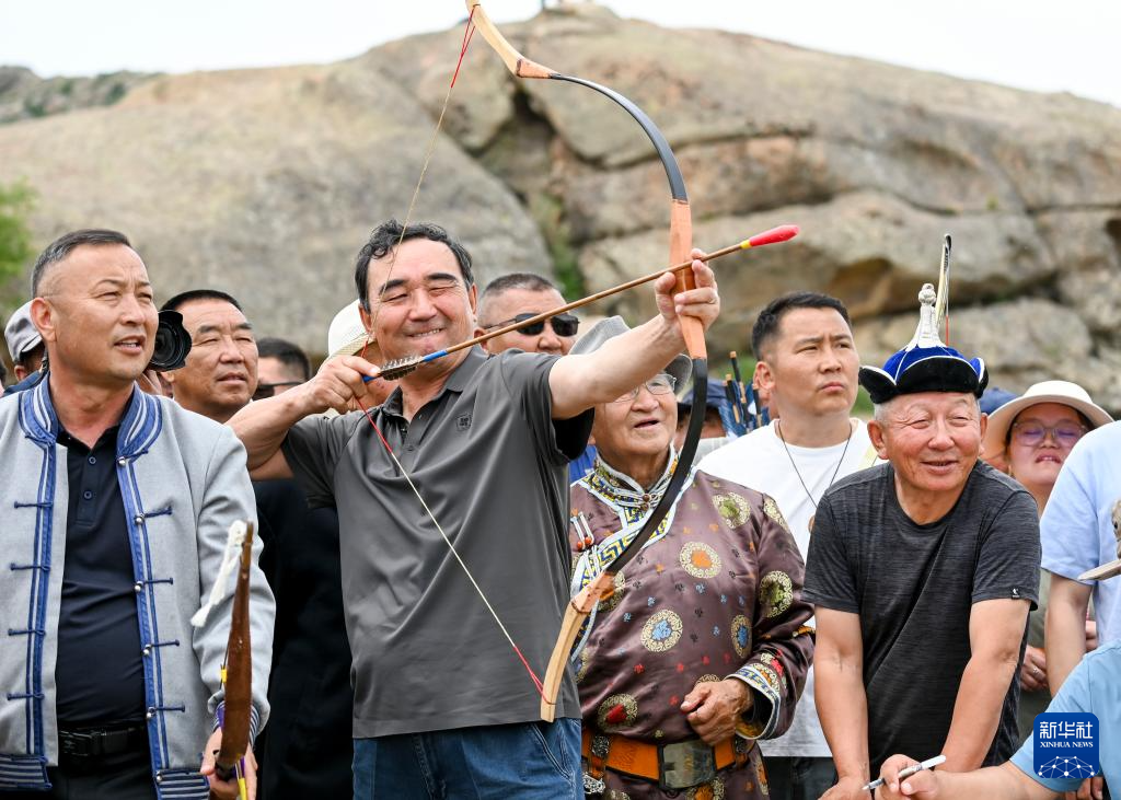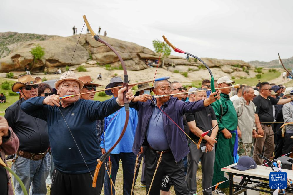 5月24日,在新疆阿勒泰市汗德尕特蒙古族乡,选手参加射箭比赛。