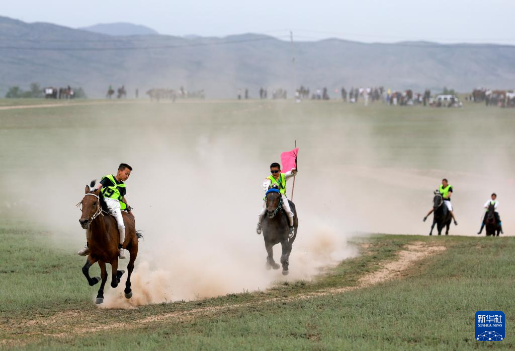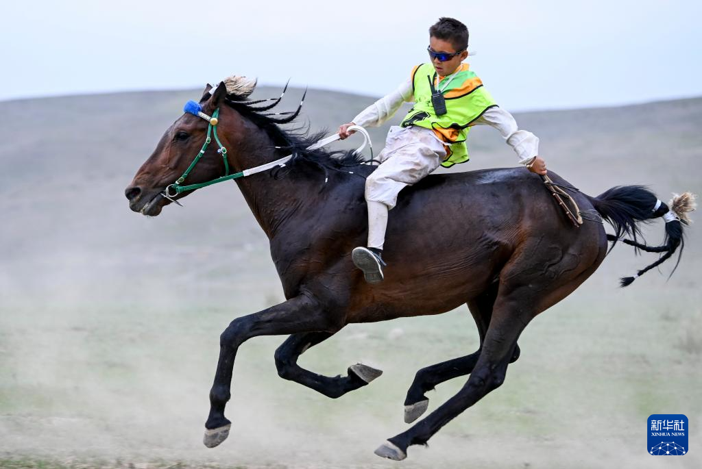 5月24日,在新疆阿勒泰市汗德尕特蒙古族乡,选手参加骑马比赛。