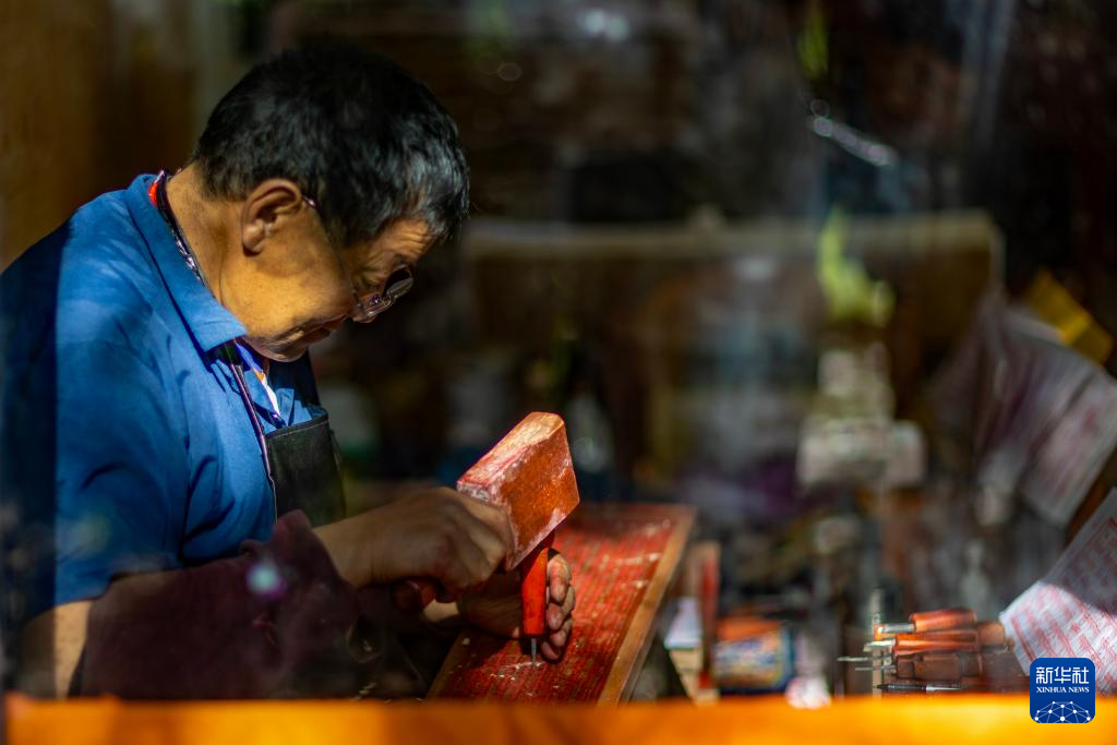 8月6日,雕刻师在工作中。西藏雪巴康雕版印刷制作技艺入选西藏自治区级非物质文化遗产代表性项目名录。