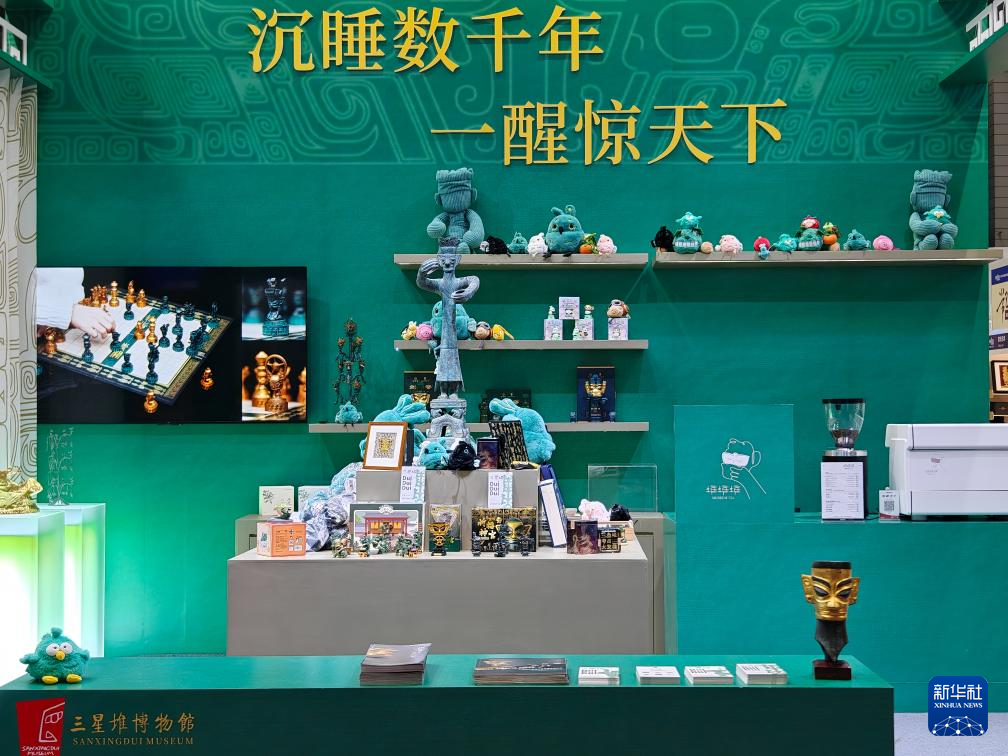 4月27日在第六届国家考古遗址公园文化艺术周活动上拍摄的三星堆博物馆文创展区。