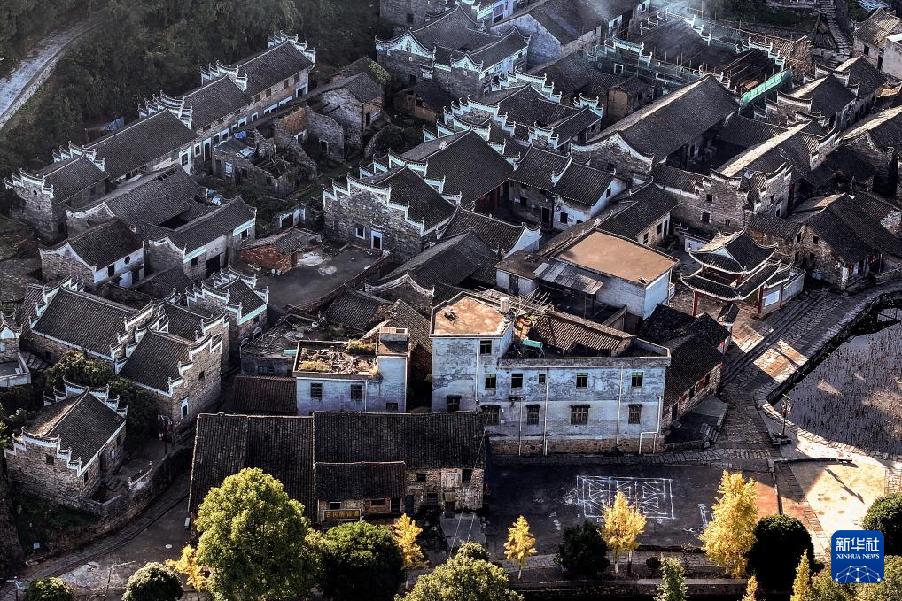 这是11月25日拍摄的郴州永兴县板梁古村局部(无人机照片)。