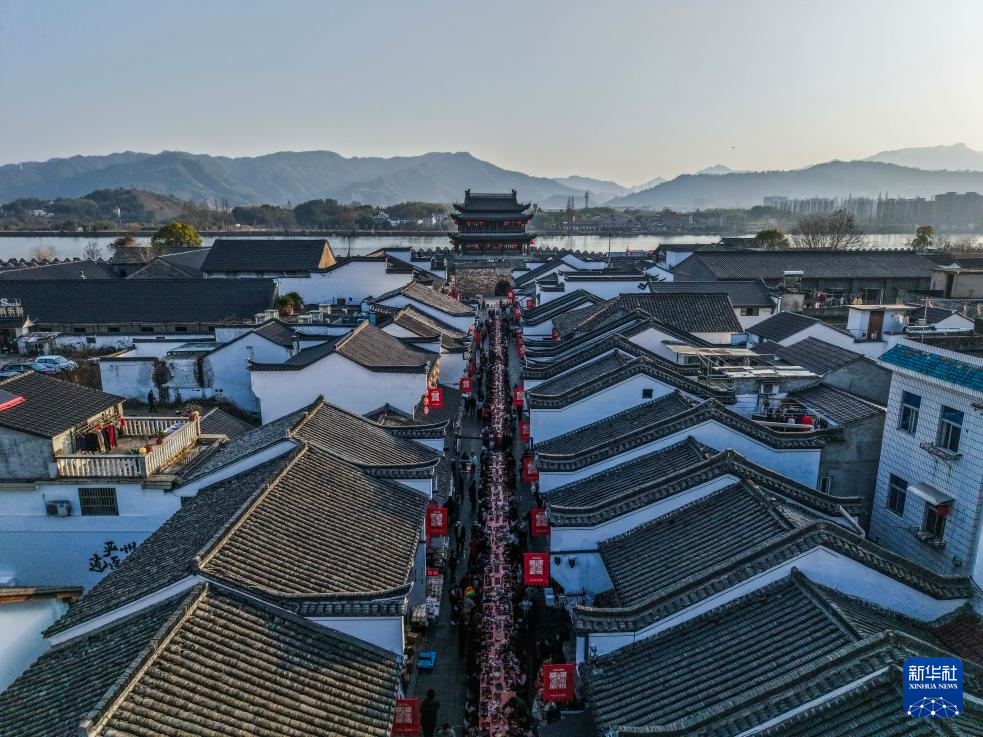 2月11日,一场名为“马上‘宋’福——严州包子宴”的千人长桌宴在浙江省建德市梅城镇严州古城开启,千余名当地群众与各地游客在古街围坐长桌,提前拥抱团圆年味。