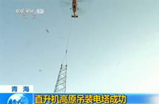 一架帶紅色卡-32型直升機(jī)順利吊起1.5噸鐵塔材料,穩(wěn)穩(wěn)放在由該架直升機(jī)吊裝的2.2噸重的鐵塔底座上 [詳細(xì)]