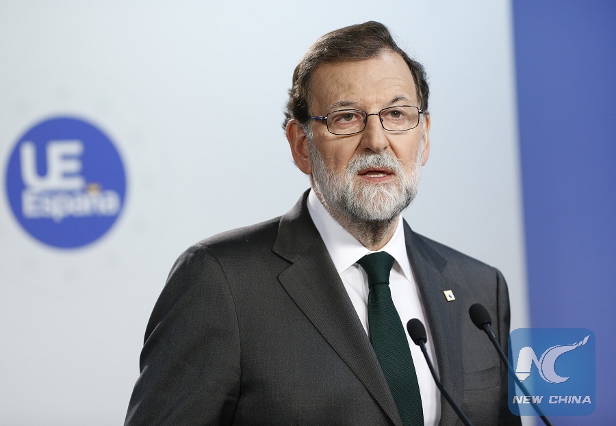 Spanish Prime Minister Mariano Rajoy addresses a press conference at the end of a two-day EU Summit in Brussels, Belgium, on Oct. 20, 2017. (Xinhua/Ye Pingfan)