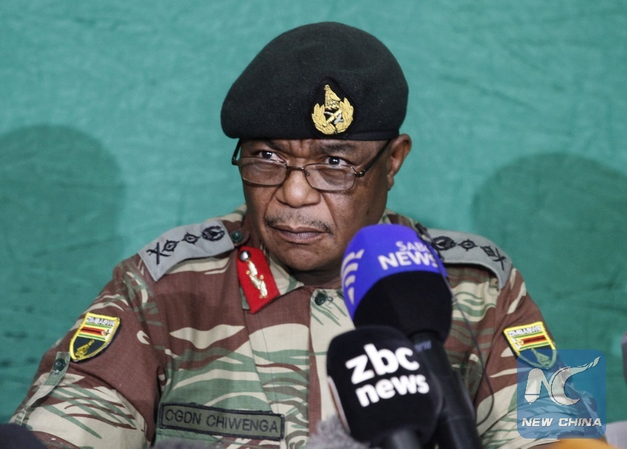 Constantino Chiwenga, the then Zimbabwe Defense Forces Chief, speaks in a press conference in Harare, Zimbabwe, on Nov. 20, 2017. (Xinhua/Shaun Jusa)