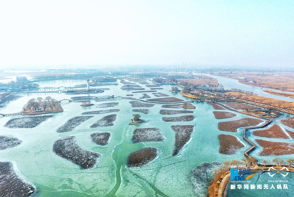 Aerial view of Baiyangdian in Xiongan New Area on New Year's Day