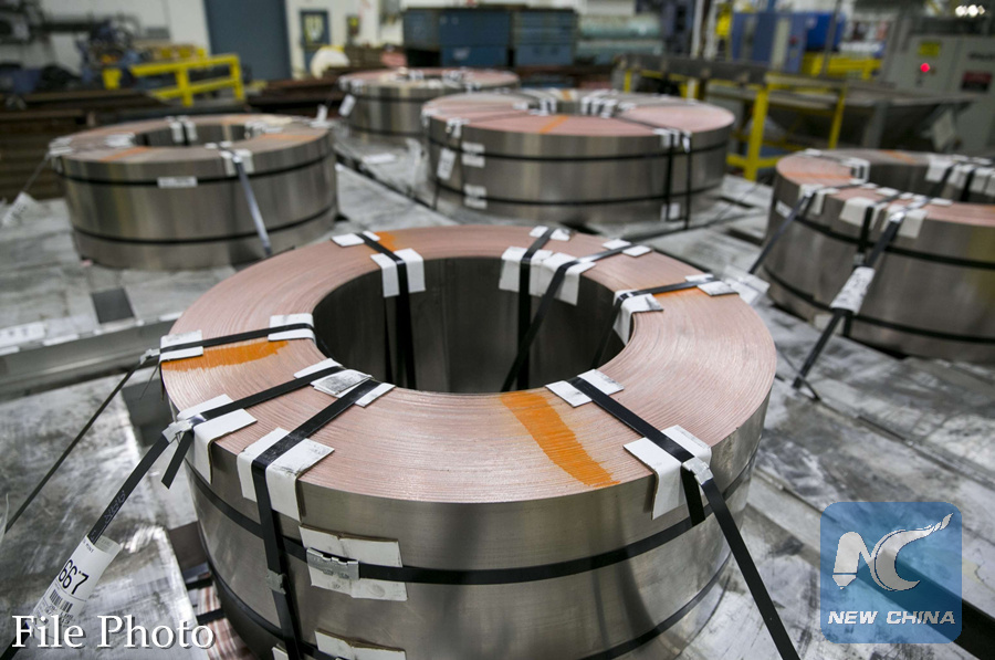 Coiled metal that will be stamped into coin blanks at the Philadelphia, Pennsylvania branch of the United States Mint on November 5, 2013. (Xinhua/SIPA)