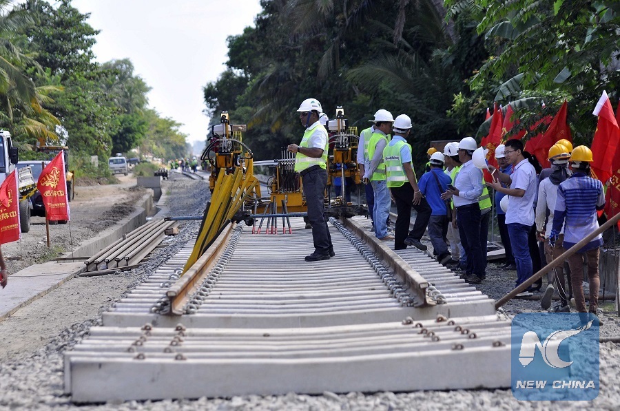 China-built railway in southern Sri Lanka starts track-laying
