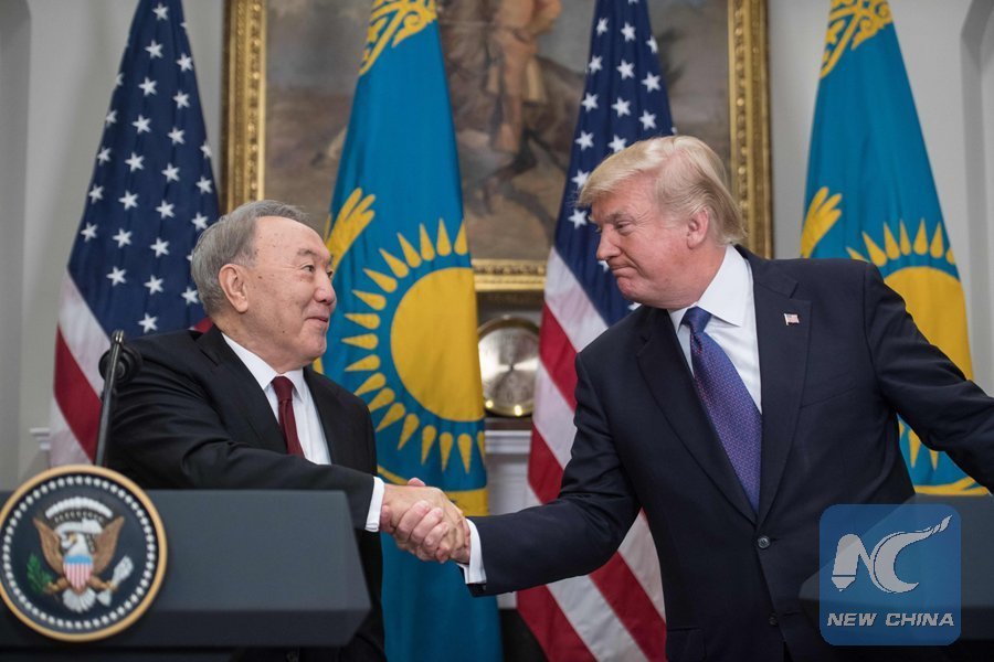 WASHINGTON, Jan. 16 (Xinhua) -- U.S. President Donald Trump and his visiting Kazakh counterpart, Nursultan Nazarbayev, met on Tuesday to discuss Afghanistan and bilateral ties among other topics.