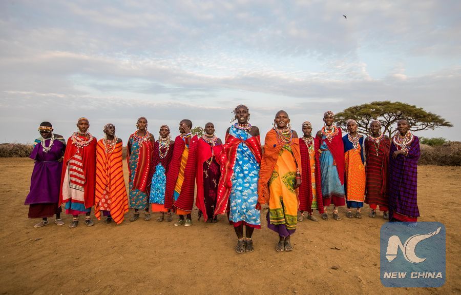 Masais pose for photographer at a Masai village in Amboseli National Park, Kenya, Jan. 9, 2018. (Xinhua/Lyu Shuai)