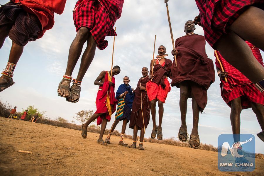 Masais perform traditional dance at a Masai village in Amboseli National Park, Kenya, Jan. 9, 2018. (Xinhua/Lyu Shuai)