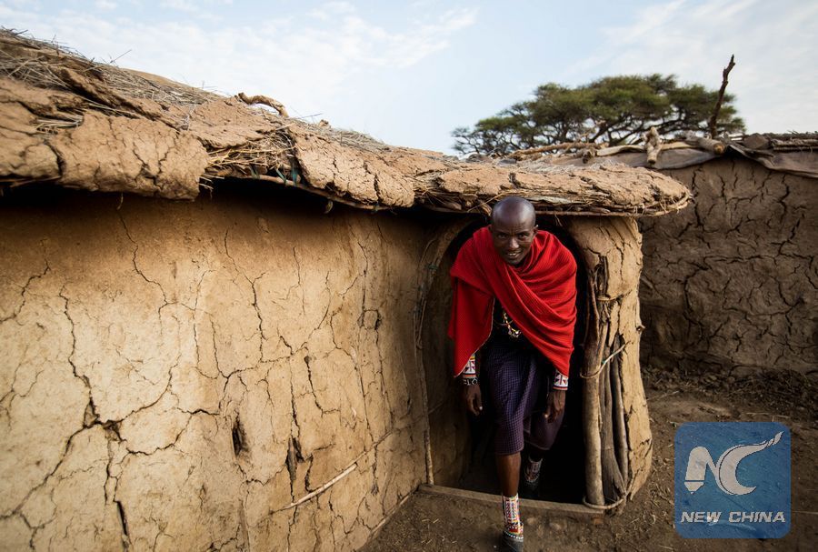 A Masai man walks out of a house at a Masai village in Amboseli National Park, Kenya, Jan. 9, 2018. (Xinhua/Lyu Shuai)