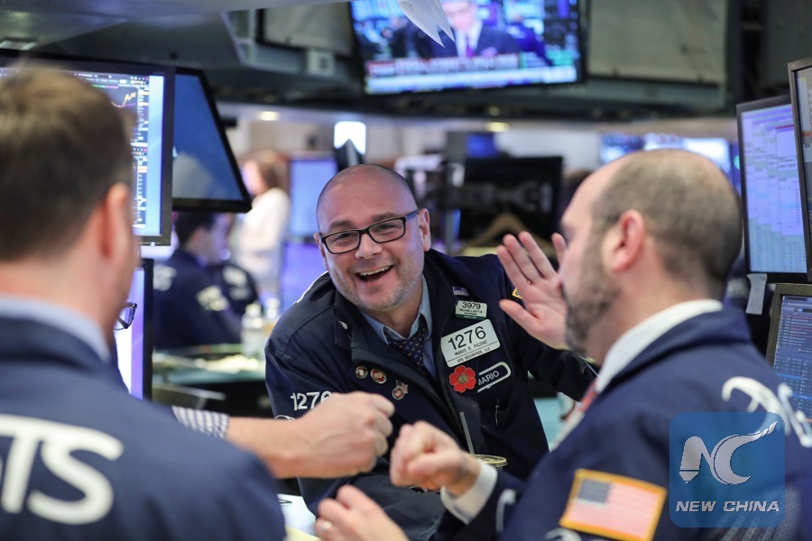 Traders work at the New York Stock Exchange in New York, the United States, Feb. 6, 2018. U.S. stocks closed higher after a volatile trading session on Tuesday. The Dow Jones Industrial Average added 567.02 points, or 2.33 percent, to 24,912.77. The S&P 500 increased 46.20 points, or 1.74 percent, to 2,695.14. The Nasdaq Composite Index was up 148.36 points, or 2.13 percent, to 7,115.88. (Xinhua/Wang Ying)