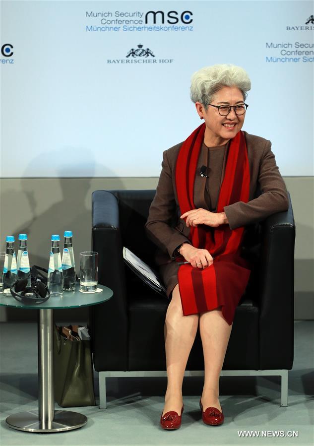 Fu Ying, chairwoman of the Foreign Affairs Committee of the National People's Congress, China's top legislature, attends a panel discussion on nuclear security during the 54th Munich Security Conference (MSC) in Munich, Germany, on Feb. 17, 2018. (Xinhua/Luo Huanhuan)