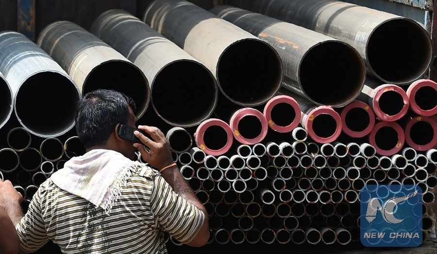 In this file photo taken on June 01, 2016, an Indian truck driver talks into his phone as he waits to offload steel pipes at an industrial area in Mumbai. (Xinhua/AFP)