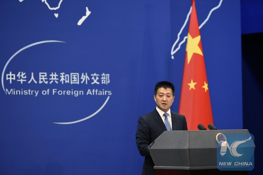 File Photo: Lu Kang, a spokesperson for Chinese Foreign Ministry, answers questions during the ministry's routine press briefing in Beijing, capital of China, July 12, 2016. (Xinhua/Chen Yehua)