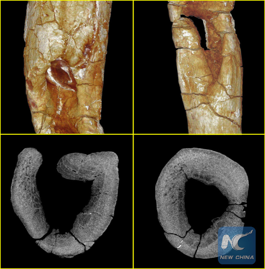 "From micro-CT scanning and reconstruction, we can tell this Lufengosaurus was attacked by a predator and the bite caused osteomyelitis which took its life. It must have suffered a lot before death," said Ran Hao, researcher at the Chinese Academy of Sciences Kunming institute of zoology.