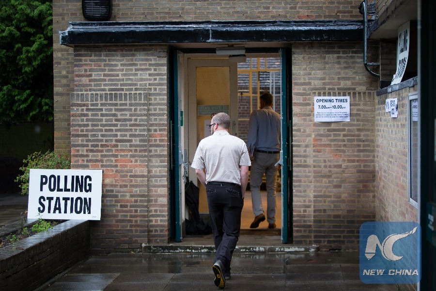 People arrive at a polling station to vote to stay in or leave the European Union (EU) in Harpenden, Britain, June 23, 2016. (Xinhua/Richard Washbrooke)