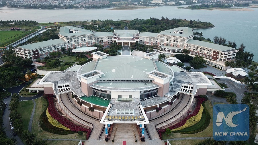 Aerial photo taken on March 23, 2018 shows the Boao Forum for Asia (BFA) International Conference Center in Boao Town, south China's Hainan Province. The BFA annual conference will take place in Hainan in April, and focus on reform and opening-up. (Xinhua/Jin Liangkuai)