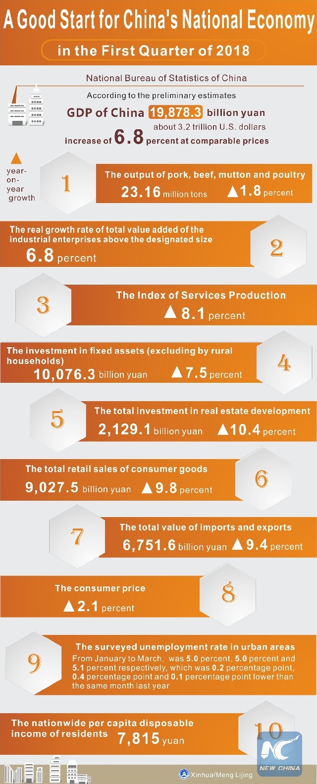 Graphics shows the Chinese economy saw a solid start to the year with a 6.8-percent growth in the first quarter, official data showed on April 17, 2018. (Xinhua/Meng Lijing)