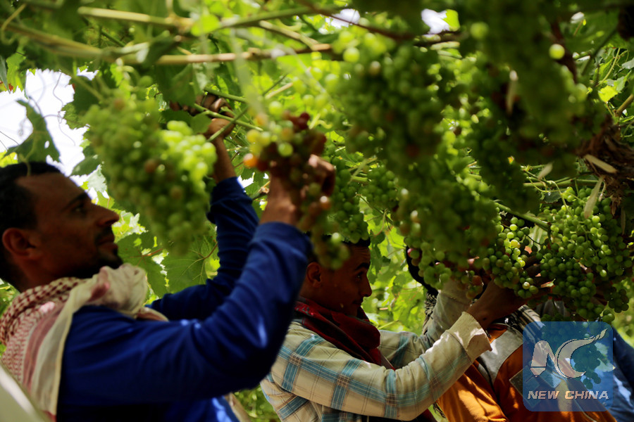"I have learned how to care for my bushes and crops to reduce loss and waste," Ali told Xinhua as he checked dangling green bunches of grapes in his 12.5-hectare farm.