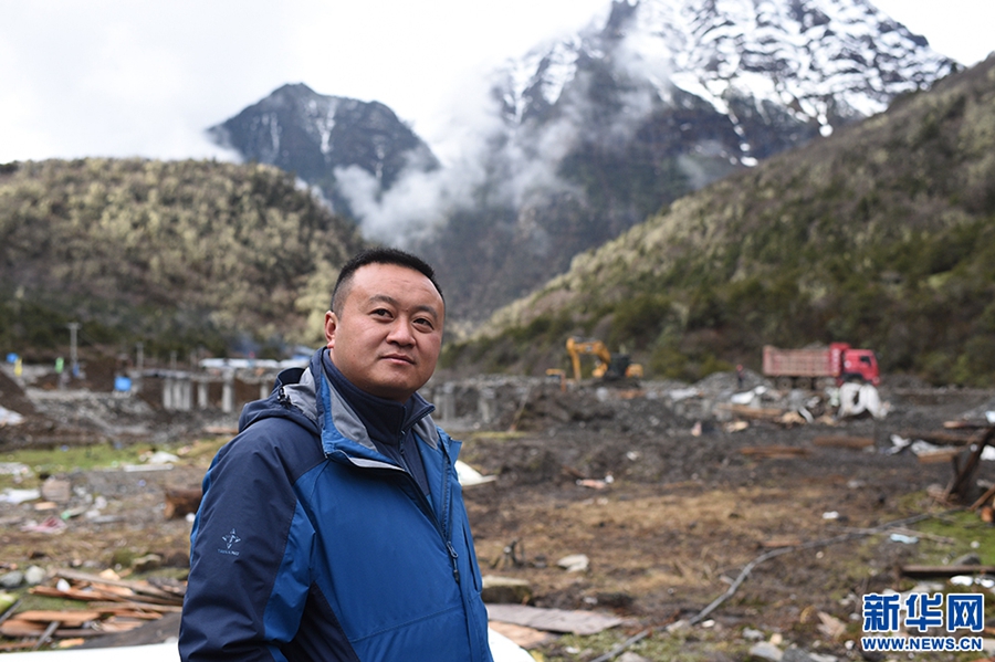 Photo taken on May 9, 2018 shows Hu Xuemin, head of Yumai Township government at a construction site. Hu came here to serve as the head of the township government in 2016. (Xinhuanet/Ma Yimeng)