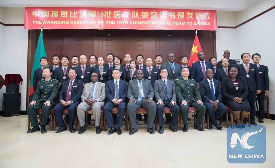 LUSAKA, May 15 (Xinhua) -- The Zambian government on Monday honored the 19th Chinese Medical Team for their exemplary work during their tour of duty in the southern African nation.