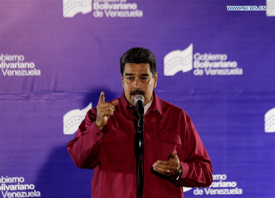 Venezuelan President Nicolas Maduro delivers a speech during a press conference after casting his vote in a polling center in Caracas, Venezuela, on May 20, 2018. Nicolas Maduro was reelected for a second six-year term in the presidential election on Sunday, according to the National Electoral Council. (Xinhua/Boris Vergara)
