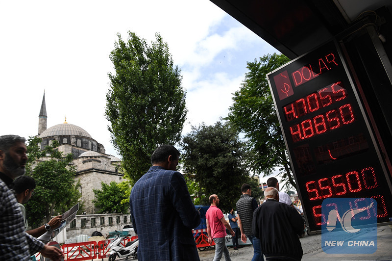ISTANBUL, May 23 (Xinhua) -- The Turkish lira declined sharply against the U.S. dollar on Wednesday to a new low, raising concerns about the country's economic outlook.
