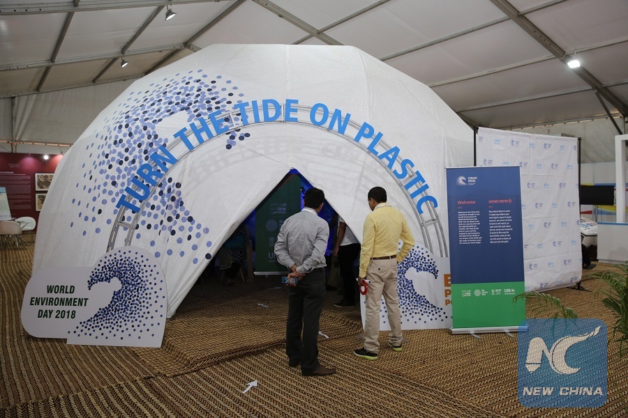 NEW DELHI, June 5 (Xinhua) -- India is hosting the World Environment Day-2018 on Tuesday as Prime Minister Narendra Modi tweeted, "Greetings on World Environment Day. Together, let us ensure that our future generations live in a clean and green planet, in harmony with nature."