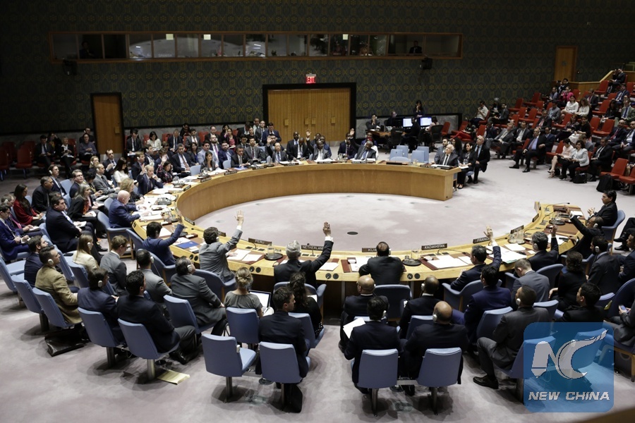 File Photo: Photo taken on June 1, 2018 shows the United Nations Security Council voting on a U.S.-drafted resolution on the question of Palestine at the UN headquarters in New York. (Xinhua/Li Muzi)