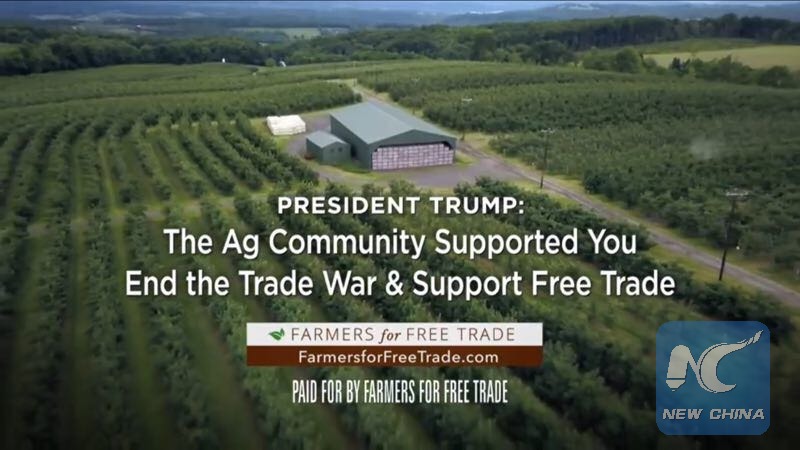 LOS ANGELES, June 20 (Xinhua) -- Cooperated with the U.S. Apple Association, Farmers for Free Trade, a leading agriculture trade lobby group, placed advertisements on cable television Wednesday, urging the White House to "end the trade war."
