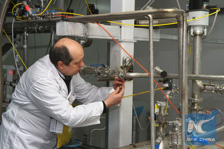 An unidentified International Atomic Energy Agency (IAEA) inspector disconnects the connections between the twin cascades for 20 percent uranium production at nuclear power plant of Natanz, some 300 km south of Tehran, on Jan. 20, 2014. (AFP photo)